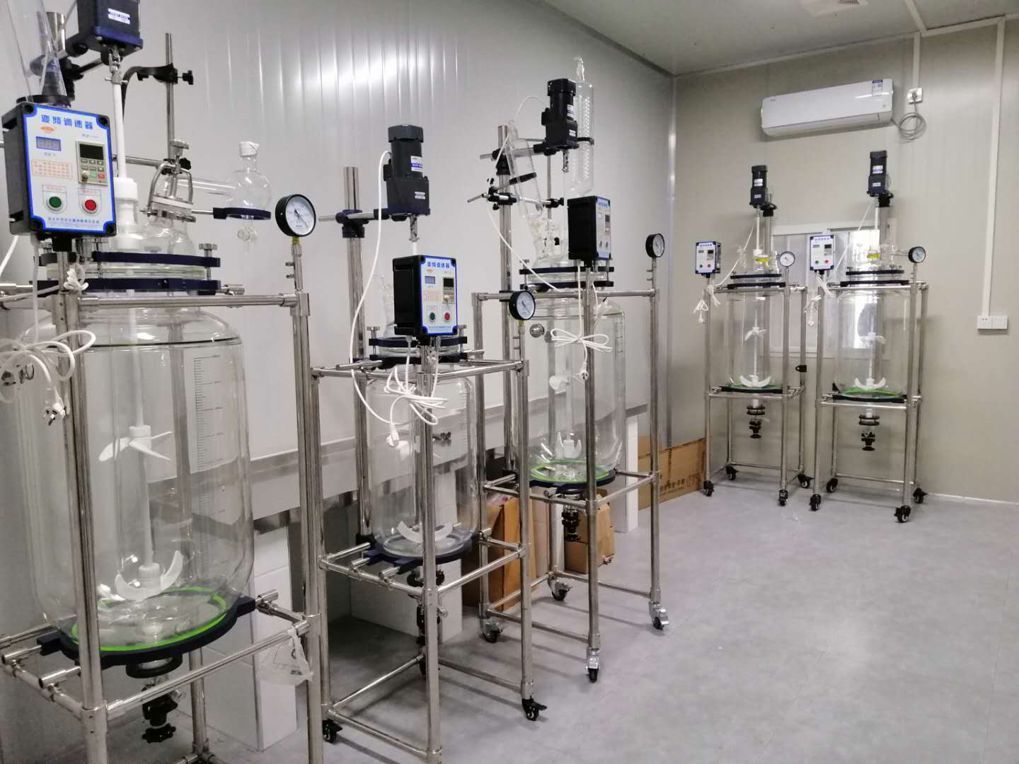 防爆托盘双层玻璃反应釜+高温循环槽安装现场